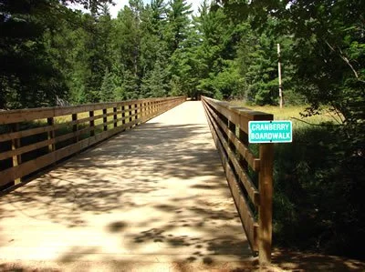 The Cranberry Boardwalk crosses a natural cranberry bog.