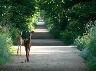 Continuing north on the Trail, past Rice Lake Road, you will encounter another traffic control gate. In less than 0.5 miles the highway gets closer to the trail again, separated from the Trail by approximately 50 feet of mixed woodland and wetland.